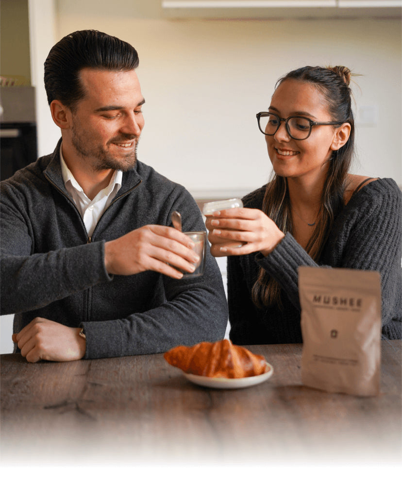 Mushee vous aide à retrouver un équilibre naturel grâce à des mélanges instantanés de champignons adaptogènes, inspirés de vos boissons du quotidien : café, cacao et matcha.